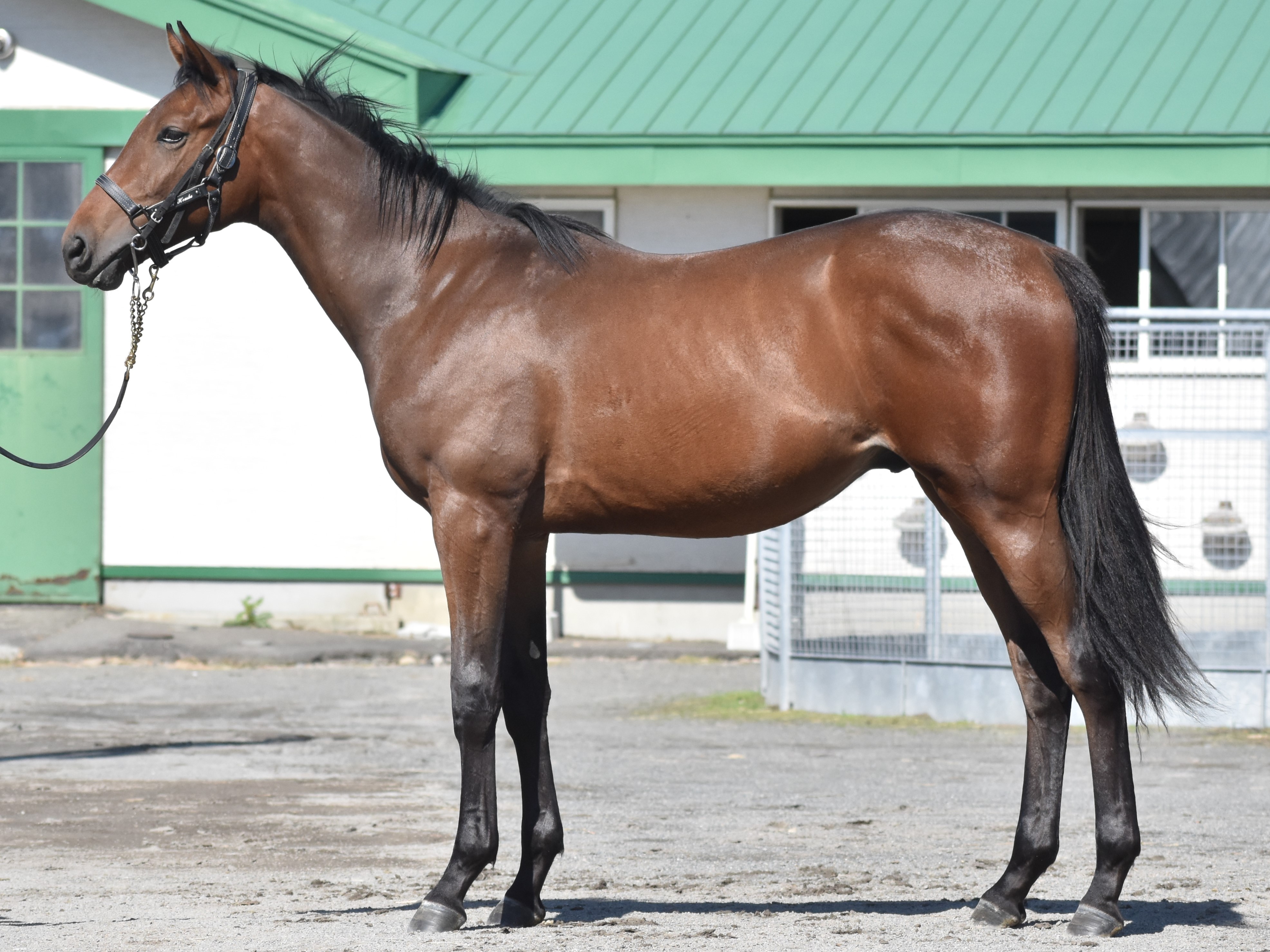 性別:牡 毛色:鹿毛 3/28生まれ 生産:ワールドファーム