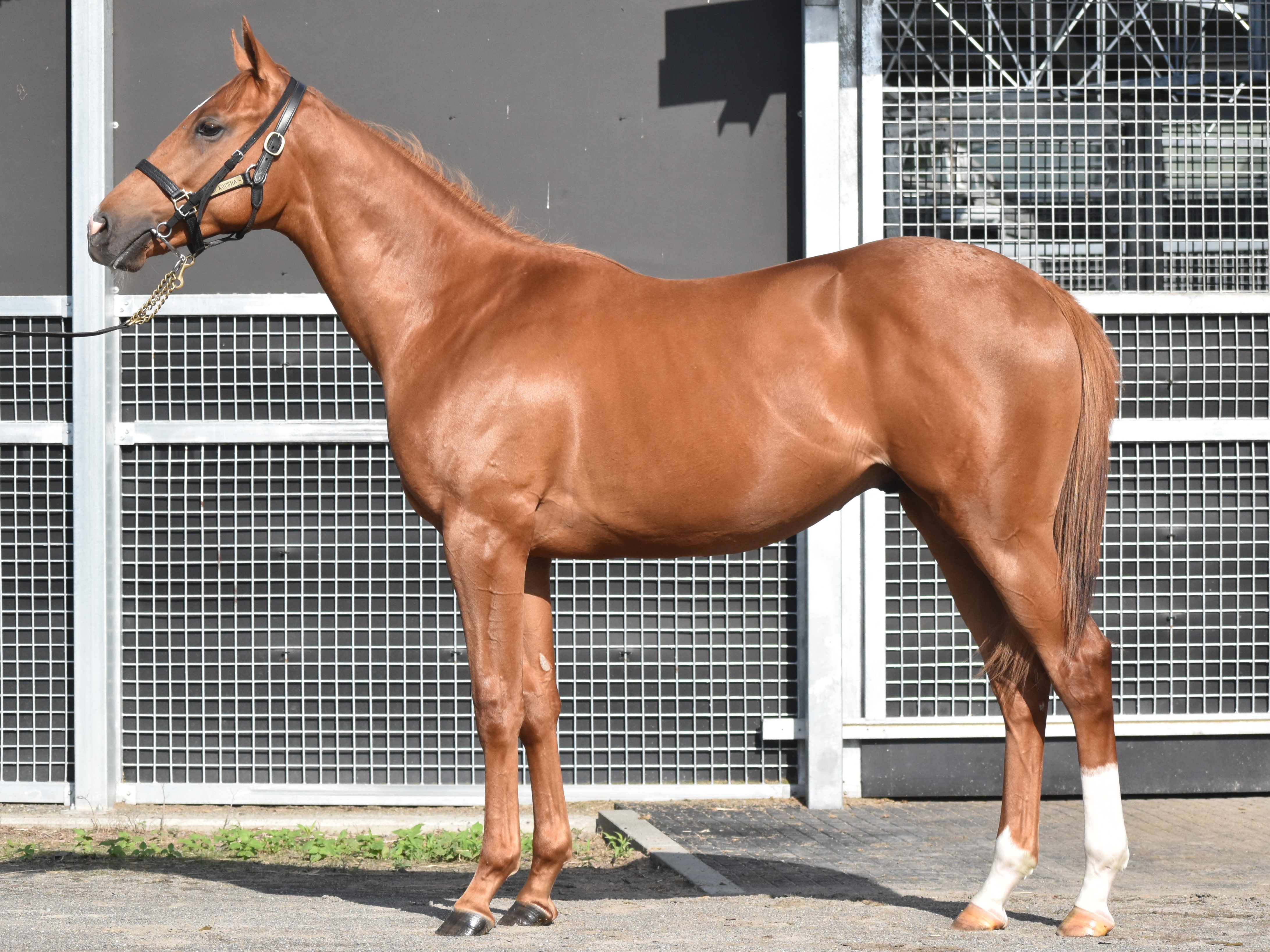 性別:牡 毛色:栗毛 4/8生まれ 生産:(有)下屋敷牧場